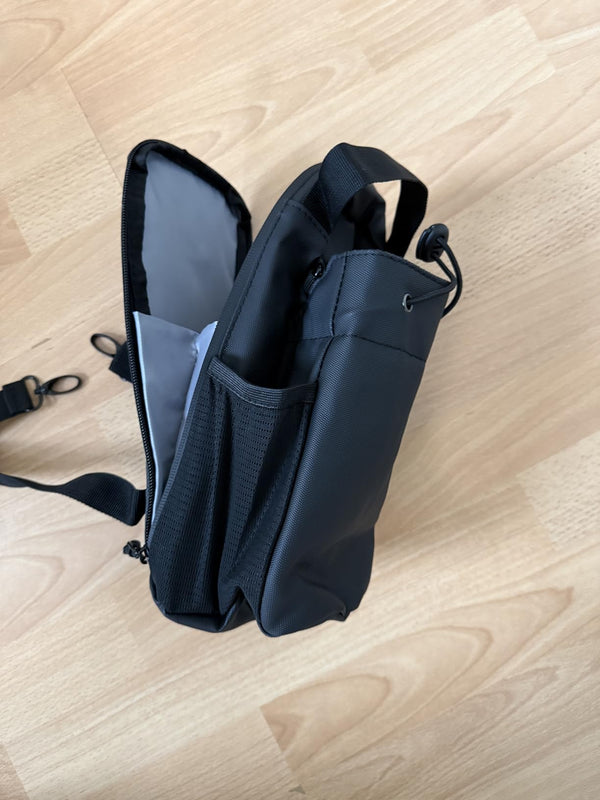 Die LiftBag ist kompakt, aber clever aufgeteilt: Flasche im Getränkehalter, dazu Fächer für Handy, Schlüssel, AirPods & Co. Perfekt für „Essentials“, nicht für ein komplettes Handtuch- und Klamotten-Setup.